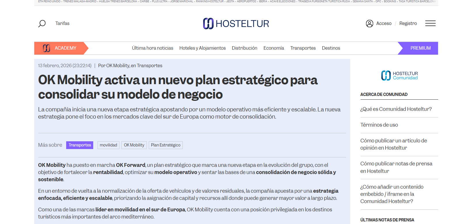 Hosteltur: OK Mobility activa un nuevo plan estratégico para consolidar su modelo de negocio
