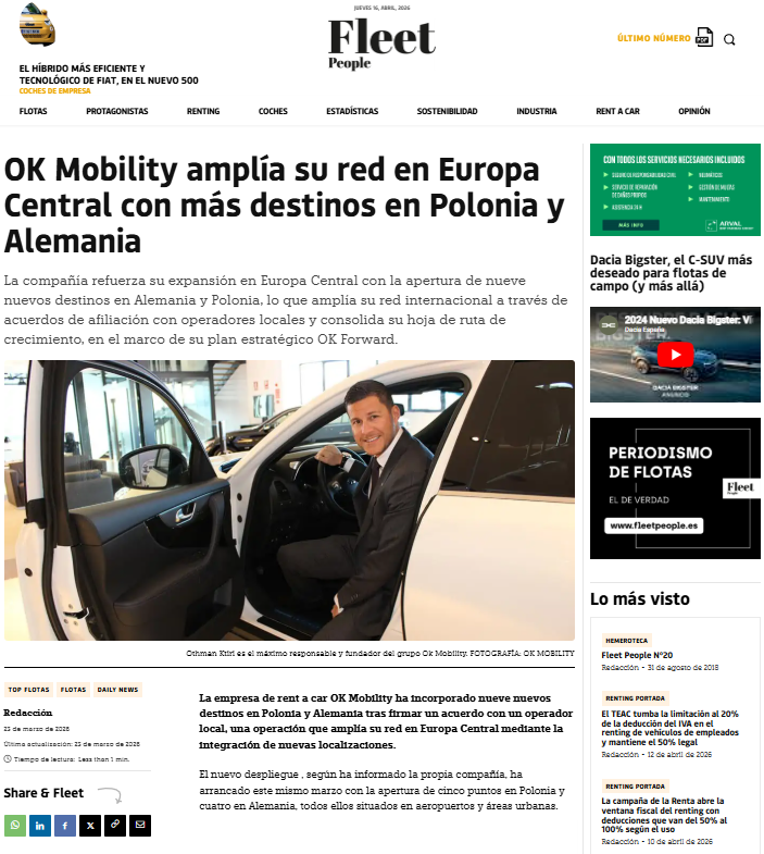 Fleet People: OK Mobility amplía su red en Europa Central con más destinos en Polonia y Alemania